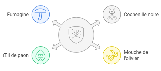 | Mouche de l’olivier | Fruits abîmés, feuillage affaibli | Pièges à phéromones, argile kaolinite |