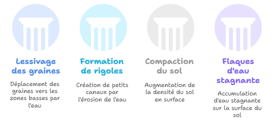 - Le lessivage des graines (déplacement et accumulation dans les zones basses)