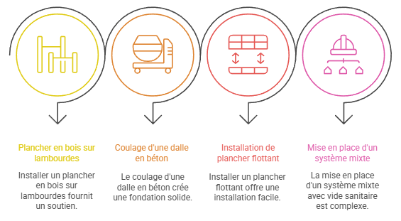 Le choix de la méthode de pose dépend de plusieurs facteurs, notamment la hauteur disponible, le budget et le niveau d’expertise technique. Les trois principales approches pour transformer un sol en terre battue en plancher fonctionnel offrent chacune des avantages distincts que nous avons pu vérifier au cours de nos nombreuses interventions.