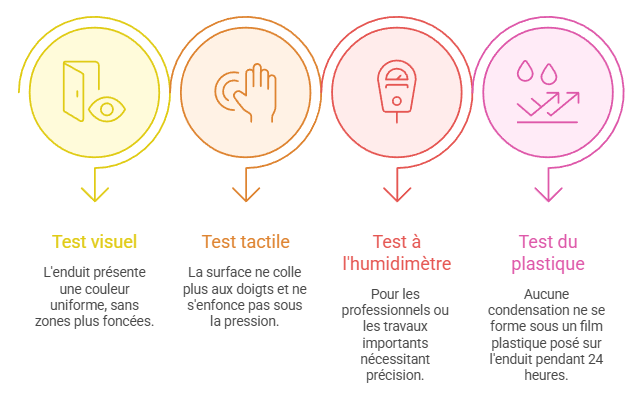 Pour vérifier si votre enduit est correctement sec, vous pouvez utiliser ces méthodes simples :