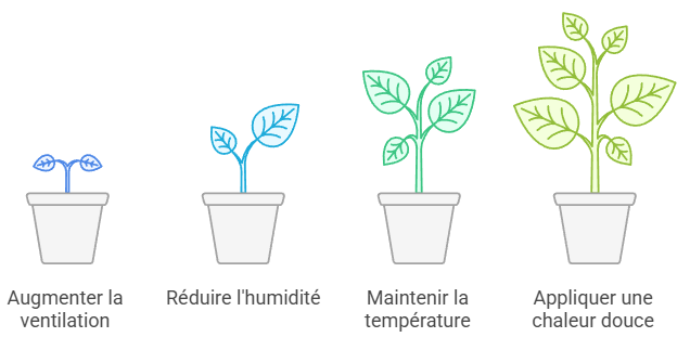 Ventilation | Modérée, sans courant d’air direct | Absente ou excessive |